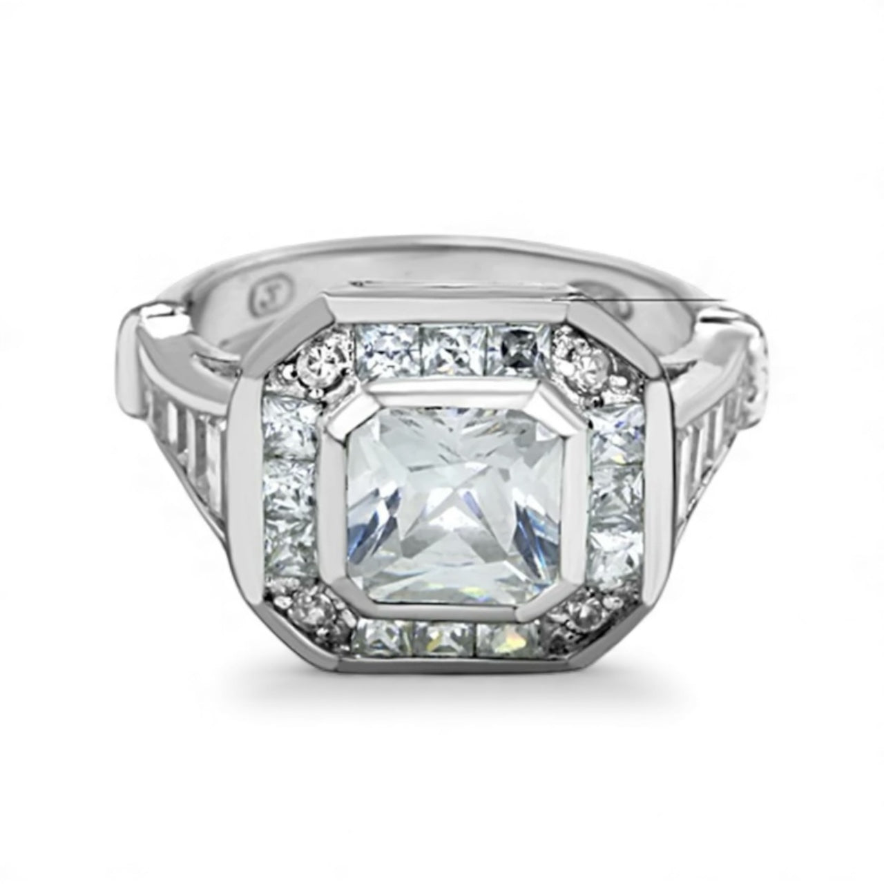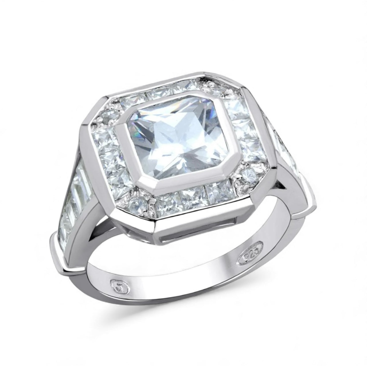 Santal…Princess cut centre stone with framed brilliant cut surround & graduated baguette arms. A majestic statement piece…